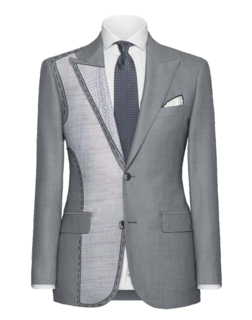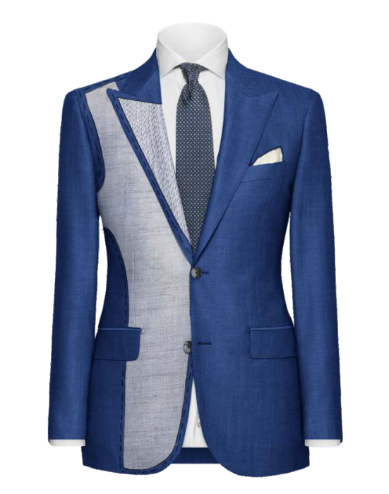 петли, вручную прошитый нагрудный карман, подкладка пиджака, воротник, пройма, вручную прошитый пояс на
